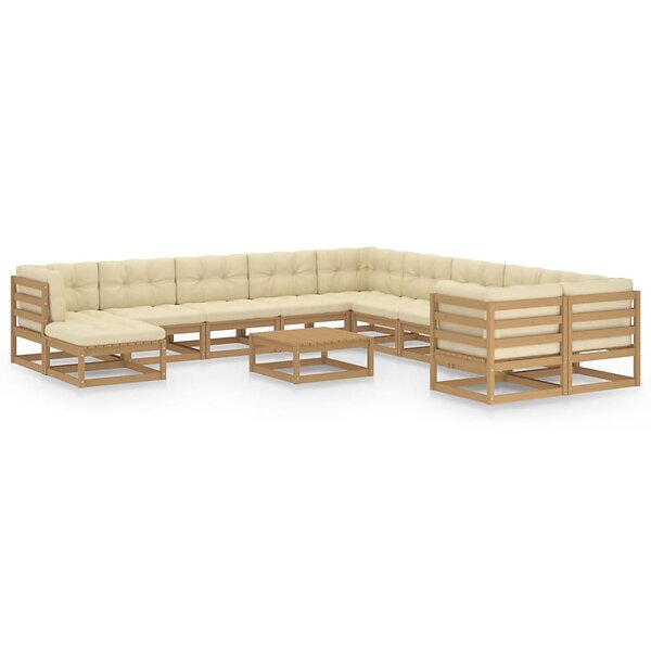 vidaXL Loungegrupp med dynor 12 delar honungbrun massiv furu 3077102