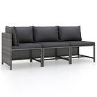 vidaXL loungesæt til haven 3 dele med hynder polyrattan grå