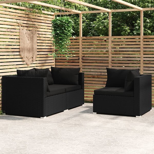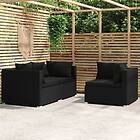 vidaXL Loungegrupp för trädgården med dynor 3 delar svart konstrotting 317527