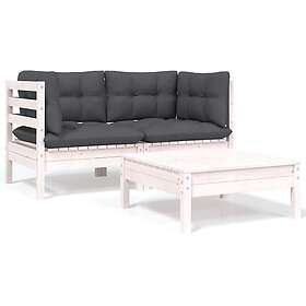 vidaXL Loungegrupp med dynor 3 delar vit massiv furu 806677