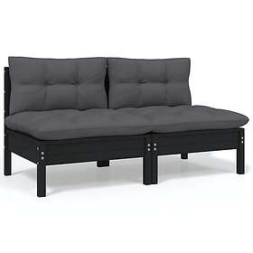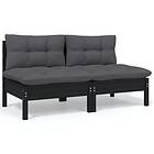 vidaXL Trädgårdssoffa 2-sits med dynor svart massiv furu 806656