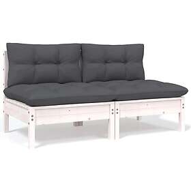 vidaXL Trädgårdssoffa 2-sits med dynor vit massiv furu 806653
