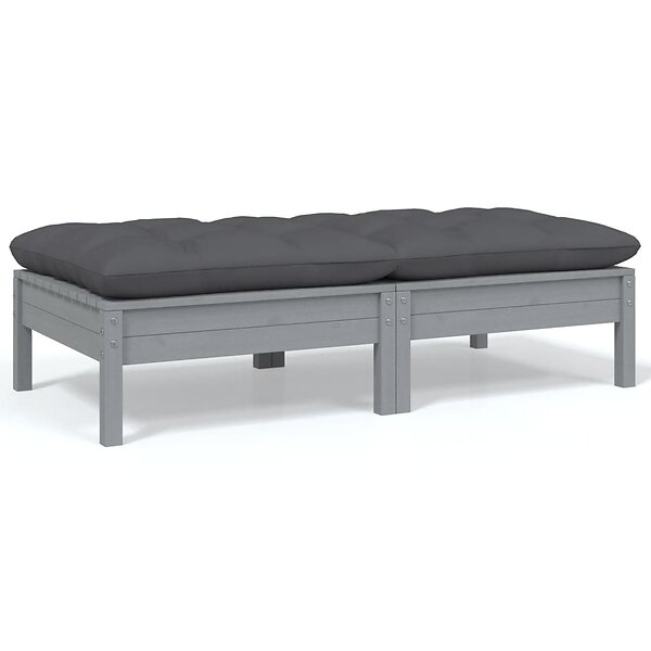 vidaXL Trädgårdssoffa 2-sits med grå dynor massiv furu 806660