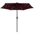 vidaXL Parasoll med LED-lampor och aluminiumstång 270 cm vinröd 47356