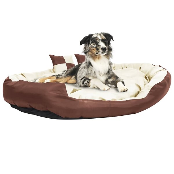 vidaXL Vändbar och tvättbar hundsäng brun gräddvit 150 x 120 25 cm 171214