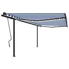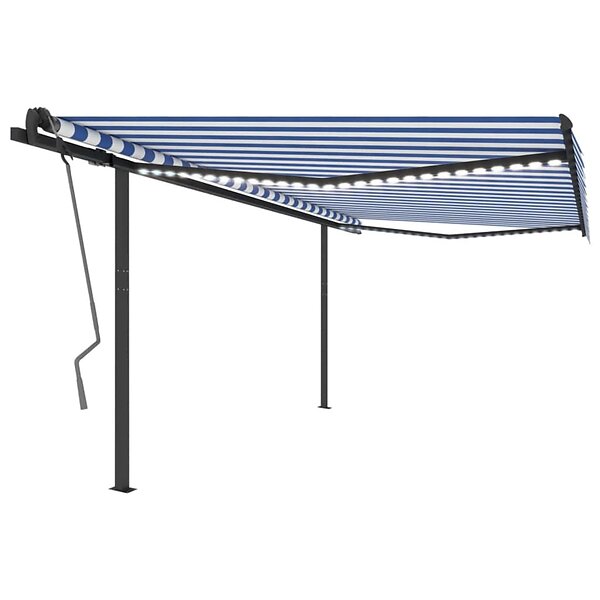 vidaXL Markis manuellt infällbar med LED 4x3.5 m blå och vit 3070221