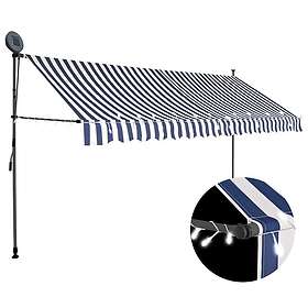 vidaXL Markise manuelt udtrækkelig med LED 350 cm blå og hvid 145846