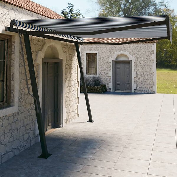 vidaXL Markis med stolpar automatisk infällbar 4x3 m blå och vit 3070146