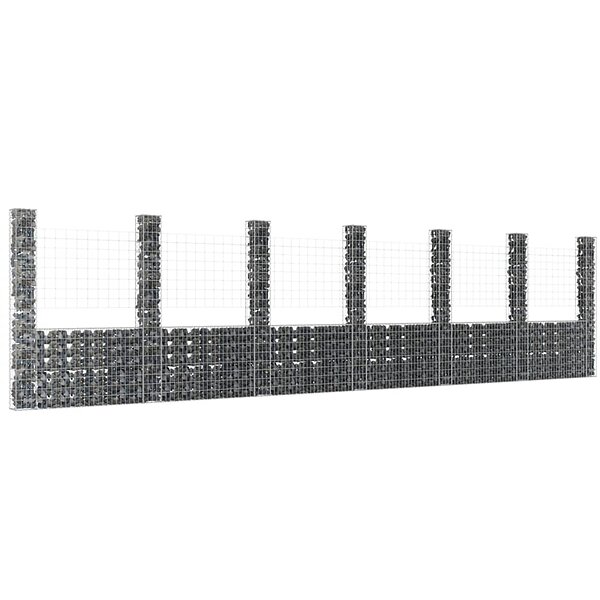 vidaXL U-formet Gabionkurv med 7 stolper Jern 740x20x200cm 151294