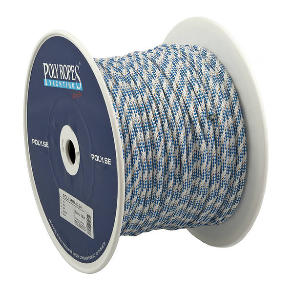 Poly-Produkter Storskotslina Poly-Braid-24 Ø6Mm White/Blå Pris Per Meter