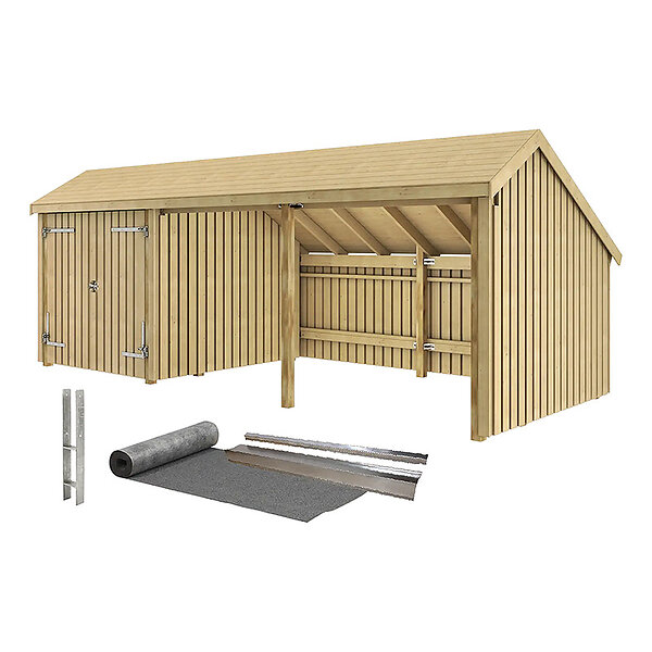 Plus Storage Shed Multi 3 Inkl Tagpap/Søjlefod Dobbelt Dør/Åben 15.5 m²
