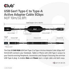 Club 3D USB Type-C-kabel USB-C till USB Type A 10 m