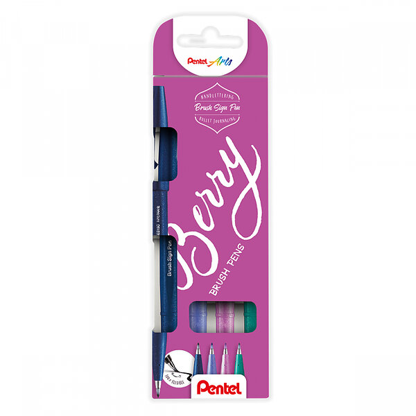 Pentel Fude Touch Sign Pen 4-set Berry