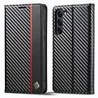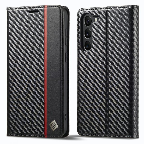 LC.IMEEKE Samsung Galaxy S23 Fodral Kolfibertextur Röd Stripe Vertical