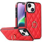 MTK iPhone 14 Rhombus Grid Mönster Skal FingerRing Röd
