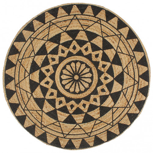 vidaXL Handgjord jutematta med svart tryck 150 cm