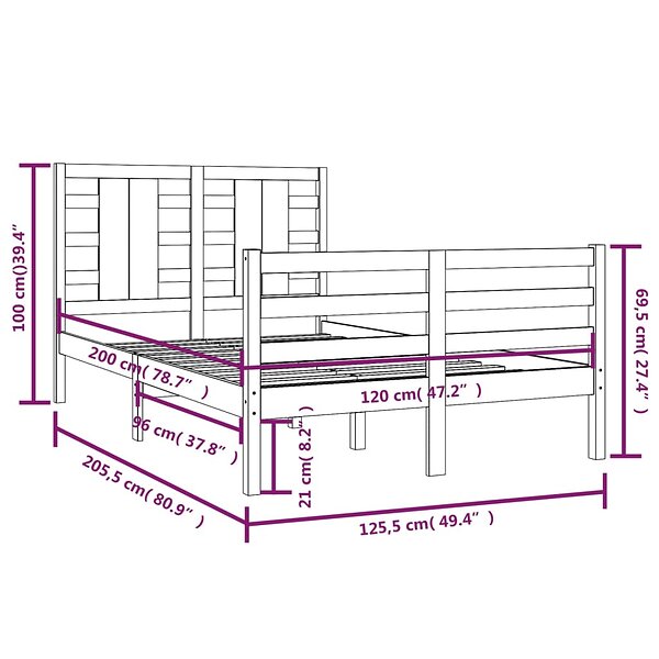vidaXL sengeramme 120x200 cm massivt fyrretræ grå