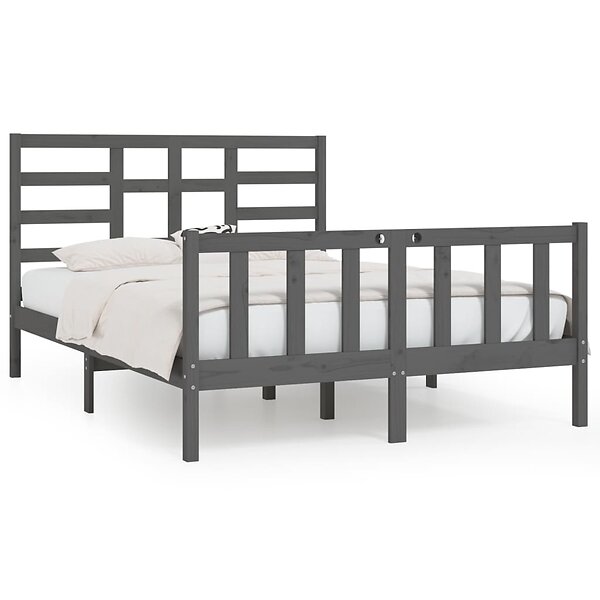 vidaXL Seng Ramme grå massiv furu 160x200 cm 3107625