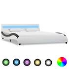 vidaXL Seng Ramme med LED vit och svart konstläder 140x200 cm 285681