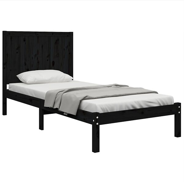 vidaXL Seng Ramme svart massiv furu 75x190 cm liten enkelsäng 3105694