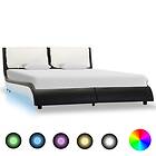 vidaXL Seng Ramme med LED svart och vit konstläder 140x200 cm 280379