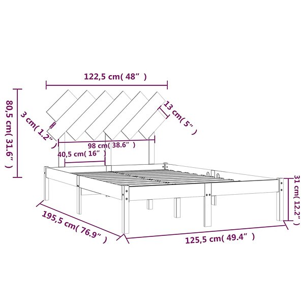 vidaXL Seng Ramme svart 120x190 cm liten dubbelsäng massivt trä 3104842