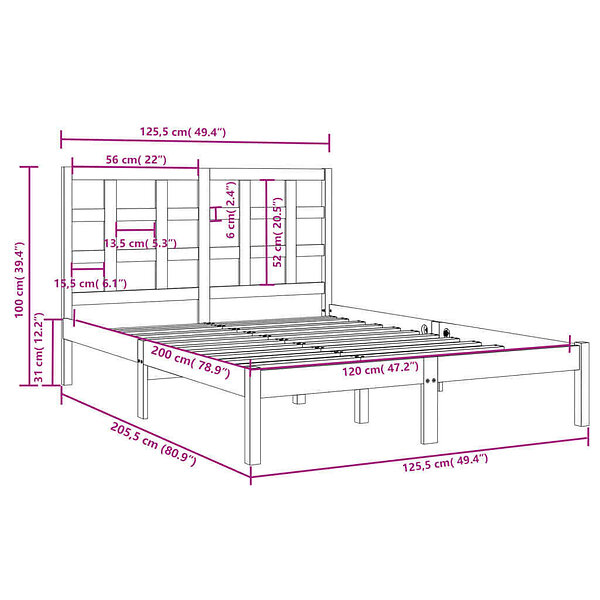 vidaXL Seng Ramme massivt trä 120x200 cm 3105465