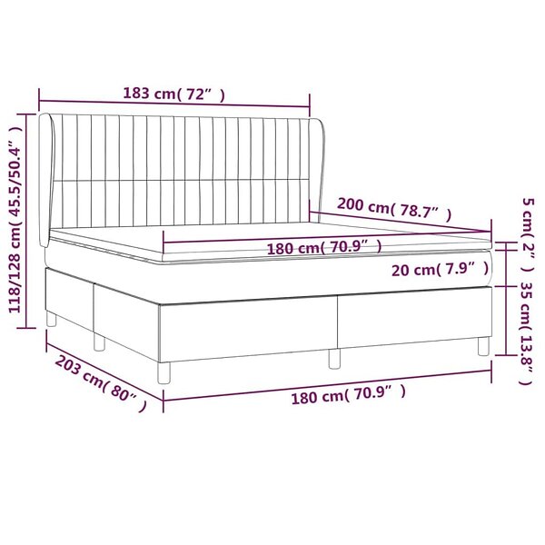 vidaXL Ramsäng med madrass mörkgrå 180x200 cm tyg 3128702