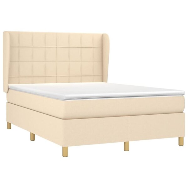 vidaXL Ramsäng med madrass gräddvit 140x200 cm tyg 3128530
