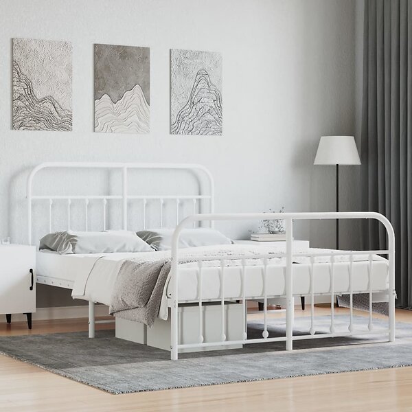 vidaXL Seng Ramme med huvudgavel och fotgavel vit metall 150x200 cm 352647