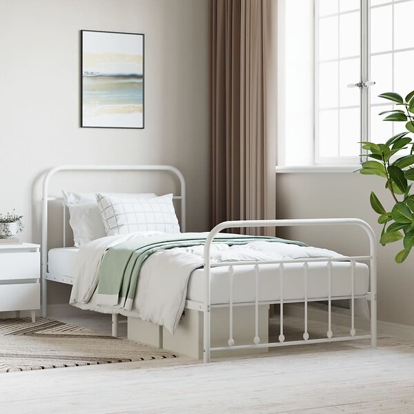 vidaXL Seng Ramme med huvudgavel och fotgavel vit metall 100x200 cm 352640