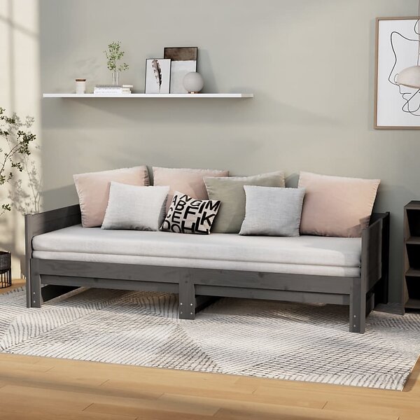 vidaXL Utdragbar dagbädd grå massiv furu 2x(90x190) cm 820264