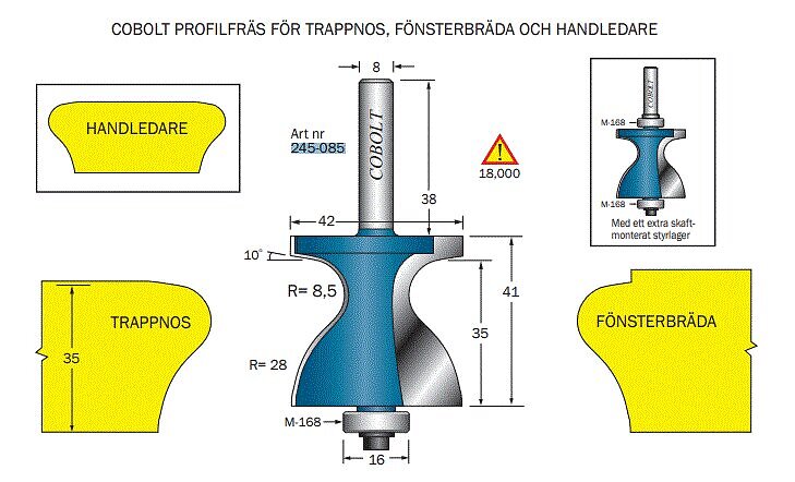 Cobolt Fräs Trappnos Fönsterbräda D=42 R1=8.5 R2=28 S=8
