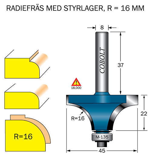 Cobolt Avrundningsfräs R=16 D=45l=22