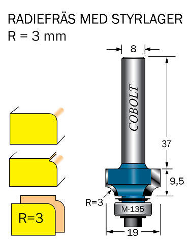 Cobolt Avrundningsfräs R=3 D=19l=95
