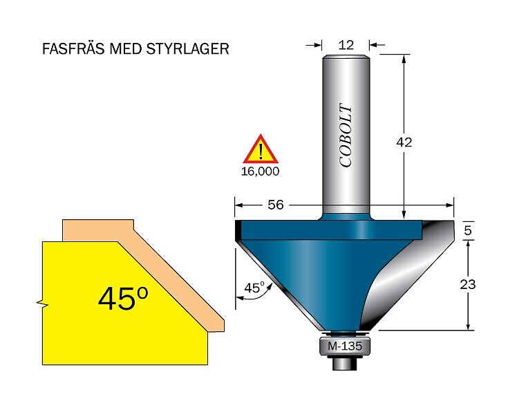 Cobolt Fasfräs 45° L=23 D=56 S=12