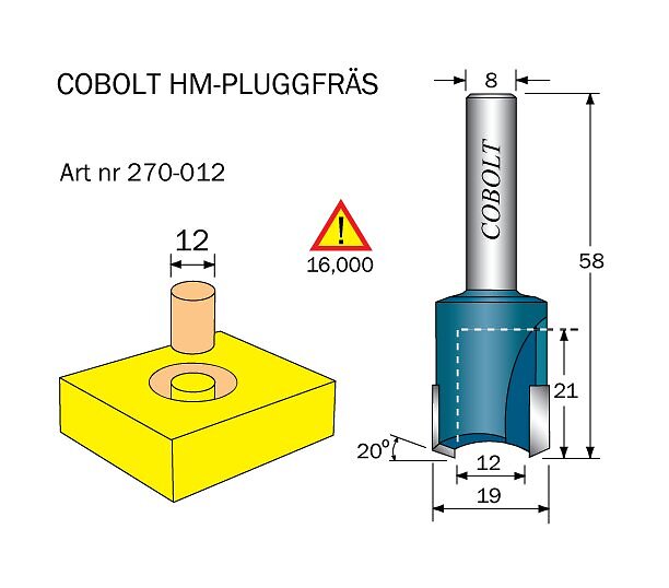 Cobolt HM Pluggfräs D=12 S=8