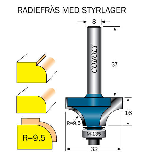 Cobolt Avrundningsfräs R=95 D=32l=16