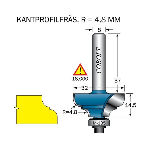 Cobolt Kantprofilfräs R=4.8l=14.5 F=9.5 D=32 S=8