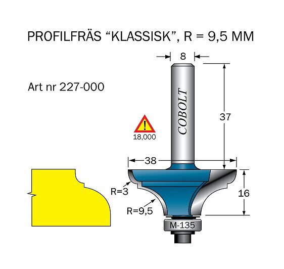 Cobolt Kantprofilfräs D=38 R=95