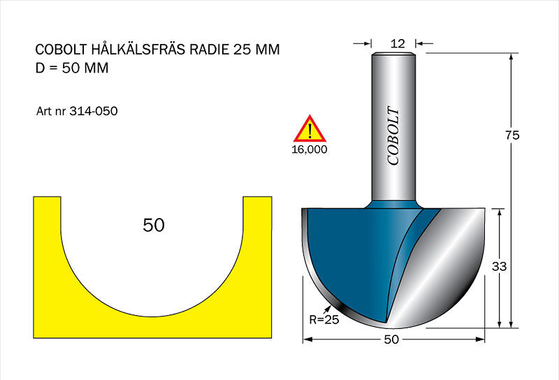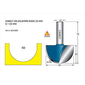 Cobolt Hålkälsfräs D=50l=33 TL=75 R=25 S=12