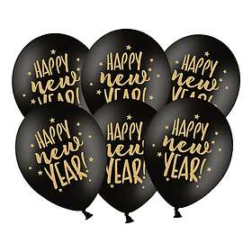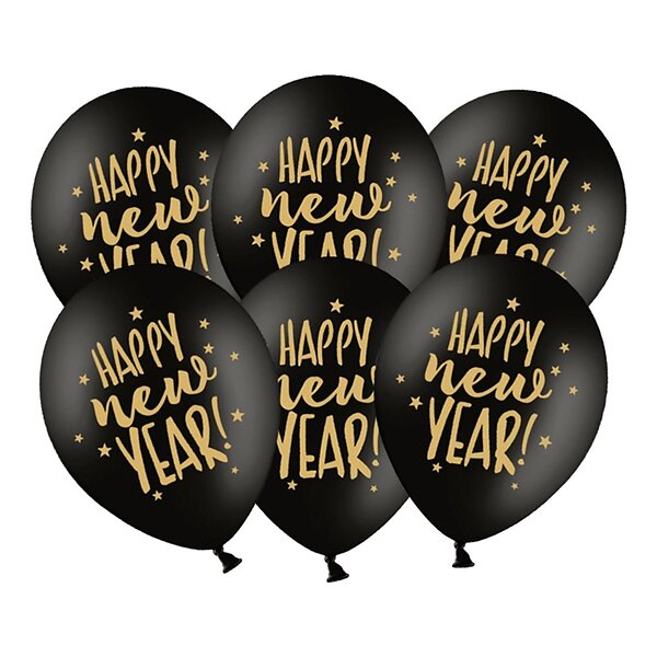 Ballonger Happy New Year Sort/Guld 6-pack
