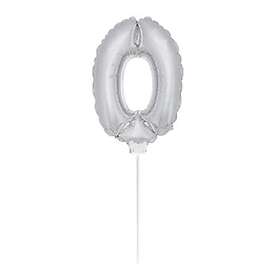 Folieballong på Pinne Silver Siffra 0