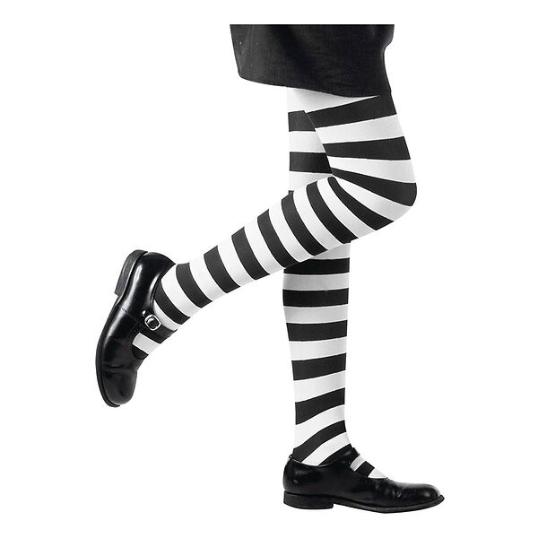 White/Svart-Randiga Strumpbyxor Barn 7-10 år
