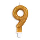 Globos Europe Tårtljus Siffra Glitter Guld Siffra 9