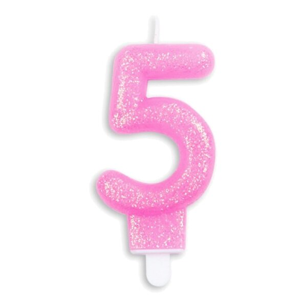 Globos Europe Tårtljus Siffra Glitter Rosa Siffra 5