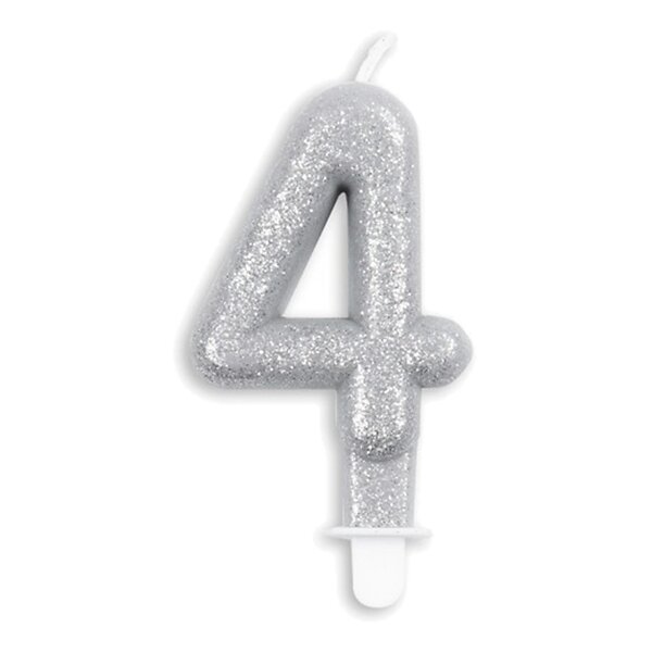 Globos Europe Tårtljus Siffra Glitter Silver Siffra 4