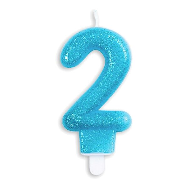 Globos Europe Tårtljus Siffra Glitter Blå Siffra 2