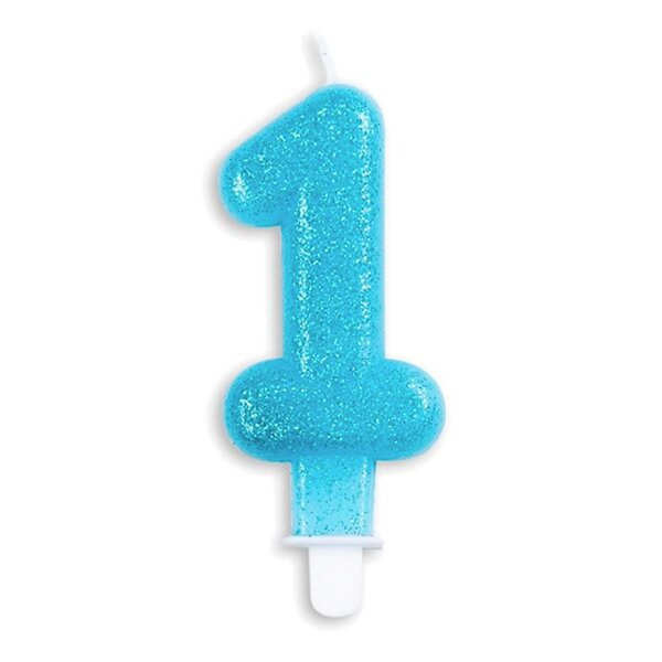 Globos Europe Tårtljus Siffra Glitter Blå Siffra 1