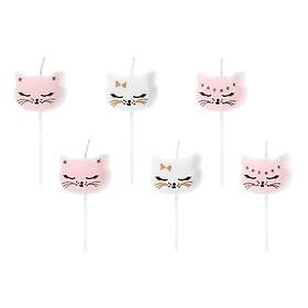 PartyDeco Födelsedagsljus Katter White/Rosa 6-pack